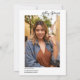 Celebrate the graduate's big day with this modern and simple graduation party invitation. Featuring four customisable photo slots to showcase your favourite memories, a sleek black graduation cap watercolor illustration, and an elegant font on a white background. The back of the card highlights the graduate's portrait, class year, and degree details, adding a personal touch. This versatile design is perfect for high school, college, or university graduations, and all colours and text are fully editable for a personalised touch.