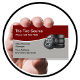 Tire store or online tire source business card in a simple modern layout with image of a stack of tire reads and cool red white and grey background design
