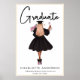 Modern Casual Script Graduate Class of 2023 Poster - Chic poster features, a lovely fashionable graduate proudly carrying her diploma and bouquet of pink roses. Graduate is in modern script typography. Poster is personalised with a a graduate with blonde, brown, or black hair and is personalised with your name and high school with year. Would look great on display at the Graduate's Graduation Party, or makes a thoughtful gift.