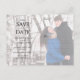 Modern photo wedding Save the Date postcards feature your photo on the front with Save the Date in chic white lettering. Your details and deliver to info on the back. Use the Customise further link and using our editing tools to make changes. Choose High-Definition printing option for better photo quality. Choose Matte paper for heavier paper.