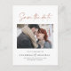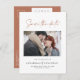 Modern stylish script elegant typography wedding save the date photo postcard. Modern minimal stylish design. Terracotta colour can be customised.