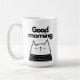 Adorable 15-ounce Cat Mum coffee mug with playful cat illustration and sweet "Good Morning" modern typography inscription. Available in both 15-ounce and 11-ounce sizes, both microwave and dishwasher safe.