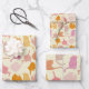 Modern Cat Pattern Pink Orange Wrapping Paper Sheet
