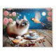 This 12-month calendar features 14 unique illustrations of a variety of cats, all in a variety of settings.