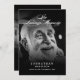 This modern celebration of life invitation sets the tone for a dignified event honouring the memory of a loved on who has passed away. This black and white invitation is suitable for a man or woman. One side of the invite features a photo, and the elegant script "In Loving Memory" with your loved one's name and dates of birth and death, creating a keepsake that can be framed. The other side of the invitation features the details of the event - the where and when of the Celebration of Life ceremony. It strikes the perfect balance between a dignified remembrance and an uplifting gathering to honour the joy that the departed brought into this world. Space is provided to include any special requests or important info. The use of elegant typography, the photographs, and the event information all come together to invite guests to a gathering that promises to be as touching as it is beautiful. This invitation is not merely an announcement but a keepsake that attendees will cherish. It invites friends and family to come together in support, reflection, and celebration of a life that, while no longer present in body, continues to inspire and influence all who knew them.