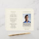 Modern folding 4 page Order of Service Funeral Program with window to add a photo of your loved one, on a light cream background with text in grey - fully customisable template.