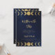 This elegant template features a deep midnight navy background adorned with luxurious gold foil moon phases and sparkling constellations. Perfect for couples planning a mystical, celestial-themed, or zodiac-inspired wedding. The ethereal design creates a magical first impression for your special day.