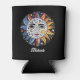 This modern can cooler design features a celestial sun moon on a simple black background, with your initial in handwritten white text for a look that is simple, stylish and fun. Personalise with your the name of your bridesmaids for a chic and trendy gift.