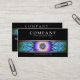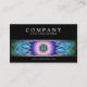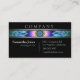 Stylish modern business card with a mostly black background. Between the silver coloured lines details of a blue and pink mandala show, providing a strong pop of colour making this contact card stand out from the crowd. Click customise to have more control over font choices and the use of space for text.
