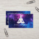 Chakra yoga instructor business cards with a cosmic galaxy background are perfect for spiritual wellness branding. This modern and eye-catching design features a white silhouette of a meditating figure in lotus pose with vibrant chakra symbols aligned down the centre, set against a deep purple and blue outer space scene filled with stars and nebula patterns. Ideal for yoga studios, holistic healers, reiki practitioners, meditation coaches, or spiritual or alternative wellness providers, this design conveys a serene, mystical, and energy-focused aesthetic. The front showcases a centred business name, while the back includes ample space for contact information, social media icons, and a QR code, all arranged clearly and professionally. The celestial background and chakra alignment create a compelling visual that reflects harmony, mindfulness, and inner balance—ideal for attracting clients seeking spiritual or energetic wellness services.