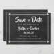 Personalise with your names and details on this cool chalkboard save the date card featuring cute cupids.