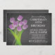 Modern Chalkboard Typographic Tulip Birthday Party Invitation