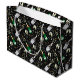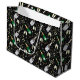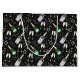 This festive gift bag features cute illustrations of champagne bottles and glasses over a black background with gold and silver accents. Perfect to carry New Years gifts or other celebrations.