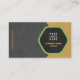 Elevate your brand with this strikingly modern business card. Featuring a bold geometric hexagon design in rich charcoal gray, accented with sophisticated gold/tan and a pop of vibrant green. Perfect for consultants, designers, architects, and any professional seeking an unforgettable, high-impact first impression. Fully customizable.
