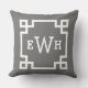 Modern Charcoal Greek Key Custom Monogram Cushion