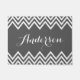 Chic trendy modern charcoal grey and white chevron doormat with custom monogram or family name. Move text, add images, and more by clicking on the CUSTOMIZE IT button.