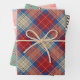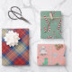 Modern charming pattern plaid green, red and pink Christmas wrapping paper sheets, 3-pack.