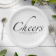 Modern Cheers Script | Black & White Wedding Paper Plate