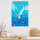 This cool design features a modern travel poster of a blue alley way in the city of Chefchaouen Morocco.