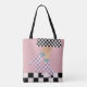 Modern Chequered Roller Skating Girl Art Checks Tote Bag