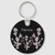 Personalised first name cherry blossoms keychain on black background, perfect as a thoughtful gift. Personalise it with a name for a special touch.