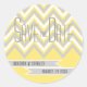 Modern chevron grey, yellow wedding Save the Date Classic Round Sticker
