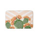 Add some fun to your bathroom with this cactus bath mat. Vibrant orange flowers bloom atop bold prickly pear cactus. This bath mat features a trendy and modern white chevrons background accenting it's floral beauty!