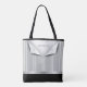 Elevate your wedding party gifts with this sophisticated trompe-l'œil lapel tote bag. Designed to mimic the structured elegance of a formal gown or custom suit, this bag features a crisp silver-gray pinstripe body, a scalloped lace-edge fold, and a personalized name plate. It is the perfect accessory for bridesmaids, maids of honor, or even a chic mother-of-the-bride gift for a black-tie wedding. Fully customizable with any name or title, this durable tote is both a stylish keepsake and a practical carry-all for the big day’s essentials.