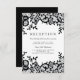 Modern Chic Black Lace Formal Wedding Enclosure Card | Chic Black Lace Wedding Stationery Suite | Elegant black and white wedding invitation with black flowers and leaves in a chic lace style. Sophisticated formal font style, with classic chic typography. Trendy wedding reception card. ***PLEASE NOTE: This card is not made of real lace. If you change the font or size of the font, it may alter how your stationery prints. It will print the way you see it on your monitor. I will not see your card once you order it, and Zazzle will NOT edit anything (typos, alignment, etc.).