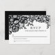 Modern Chic Black Lace Formal Wedding RSVP Card | Chic Black Lace Wedding Stationery Suite | Elegant black and white wedding response card with black flowers and leaves in a chic lace style. Sophisticated formal font style, with classic chic typography. Trendy wedding RSVP card. ***PLEASE NOTE: This card is not made of real lace. If you change the font or size of the font, it may alter how your stationery prints. It will print the way you see it on your monitor. I will not see your card once you order it, and Zazzle will NOT edit anything (typos, alignment, etc.).