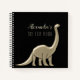 Simple, modern, chic black and white sketch book with name and gold dinosaur silhouette.