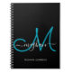 Modern Chic Black Teal Script Monogrammed Notebook