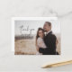 This modern chic black and white photo wedding thank you postcard is perfect for a simple wedding. The minimalist boho design features rustic unique and stylish bohemian typography in minimal clean black and white. Personalise the back of the postcard with your names, your return address, and a thank you message. Alternatively, leave the thank you message template section blank to hand write a thoughtful personalised note on each card after they arrive.