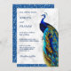 Amaze your guests with this elegant peacock theme wedding invite featuring a beautiful peacock with vivid feathers and modern typography on a white marble background. Simply add your event details on this easy-to-use template to make it a one-of-a-kind invitation. Flip the card over to reveal a faux blue glitter texture on the back of the card.