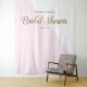 This modern, blush pink, bridal shower back drop serves as a photo op and welcome sign. Create an instant selfie station with the bride-to-be. Personalise the words. Featuring a gold script font for the words "bridal shower".