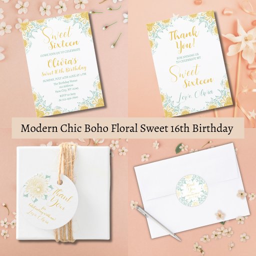 Modern Chic Boho Floral Sweet 16th BirthdayDesigned by Sheela Shrestha