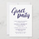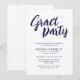 Modern Chic Brush Script Navy & White Grad Party Invitation