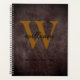Modern chic faux burgundy leather black script name & yellow-tan monogram planner, with year and custom text, you can customise further if you wish.