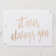 Simple and pretty calligraphy style "It was always you" wedding day card from bride to groom or groom to bride.