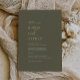 This modern chic gold foil olive green casual wedding invitation is perfect for a modern wedding. The woodsy boho design features rustic unique and stylish bohemian typography in a minimal woodland forest green colour with luxurious pressed gold foil accents.