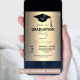 The back of this invitation exudes a sense of modern elegance. It features a gold metallic background, adding a warm and inviting feel to the design. At the top, a classic black graduation cap symbolises academic achievement and sets the tone for the celebration.