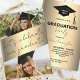 This is a modern and chic graduation party invitation that is fully customisable. The front features two photo slots, one at the top and one at the bottom, allowing you to personalise it with your favourite graduation photos. The centerpiece of the design is a gold banner with elegant, cursive typography stating “Let’s celebrate our graduate!” This adds a touch of sophistication and festivity to the design, making it perfect for such a joyous occasion.