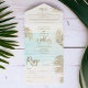 Modern chic gold palm tree tropical beach wedding all in one invitation