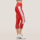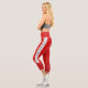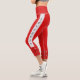 Fun leggings in red for a keen golfer. The bold geometric pattern at the base of the legs is created from golf clubs and golf balls on a red background. Bright and cheerful. The text down the side of each leg is in black on a silver grey stripe, and can be customised with your preferred caption - different on each leg if you wish.