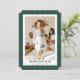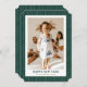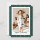 Modern green and gold photo New Year card featuring elegant strands. Easily personalise this minimalist, yet stylish holiday card online.
