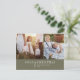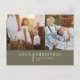 This modern chic green photo collage Christmas news holiday postcard is the perfect stylish holiday greeting. This simple boho design features classic sophisticated calligraphy in rustic olive green and white. Personalise your postcard with 2 photos, your family name, first names, and year. Include an optional year in review or family newsletter on the back.