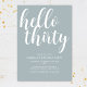 Celebrate your 30th birthday in style with this modern, chic birthday party invitation. With a pretty light blue background, the white script typography reads "Hello thirty". Underneath, in modern white typography, you can easily customise with your details.