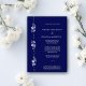 Modern Chic Minimal White Floral Navy Blue Wedding Announcement