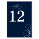 These wedding table numbers feature a deep navy blue background with clean white text. The design is modern, chic, and easy to read. Simple typography and balanced spacing create a polished and elegant look. These table numbers pair perfectly with navy blue and white wedding décor and modern reception themes.