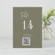 This modern chic olive green QR code table number is perfect for a simple wedding. The woodsy boho design features rustic unique and stylish bohemian typography in a minimal woodland forest green colour.